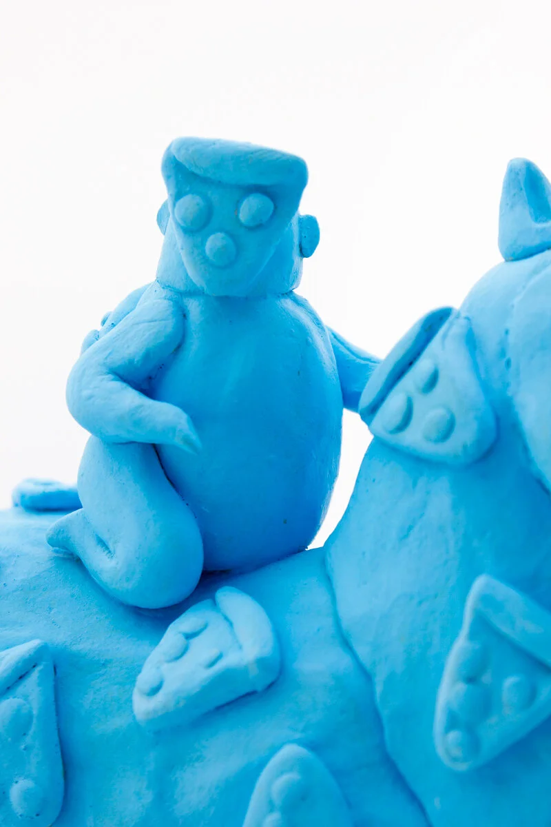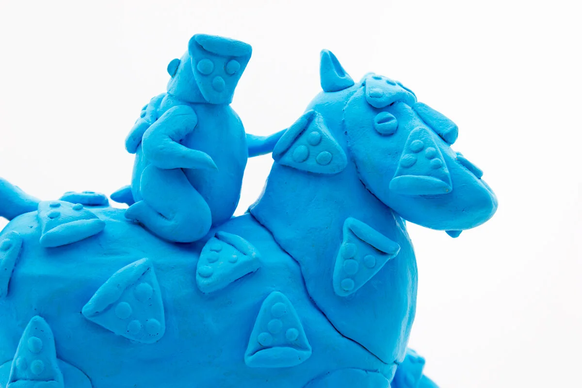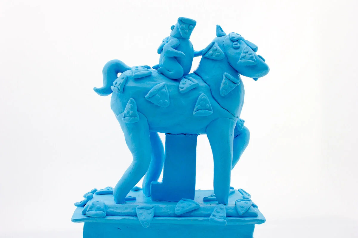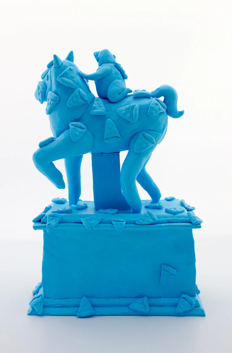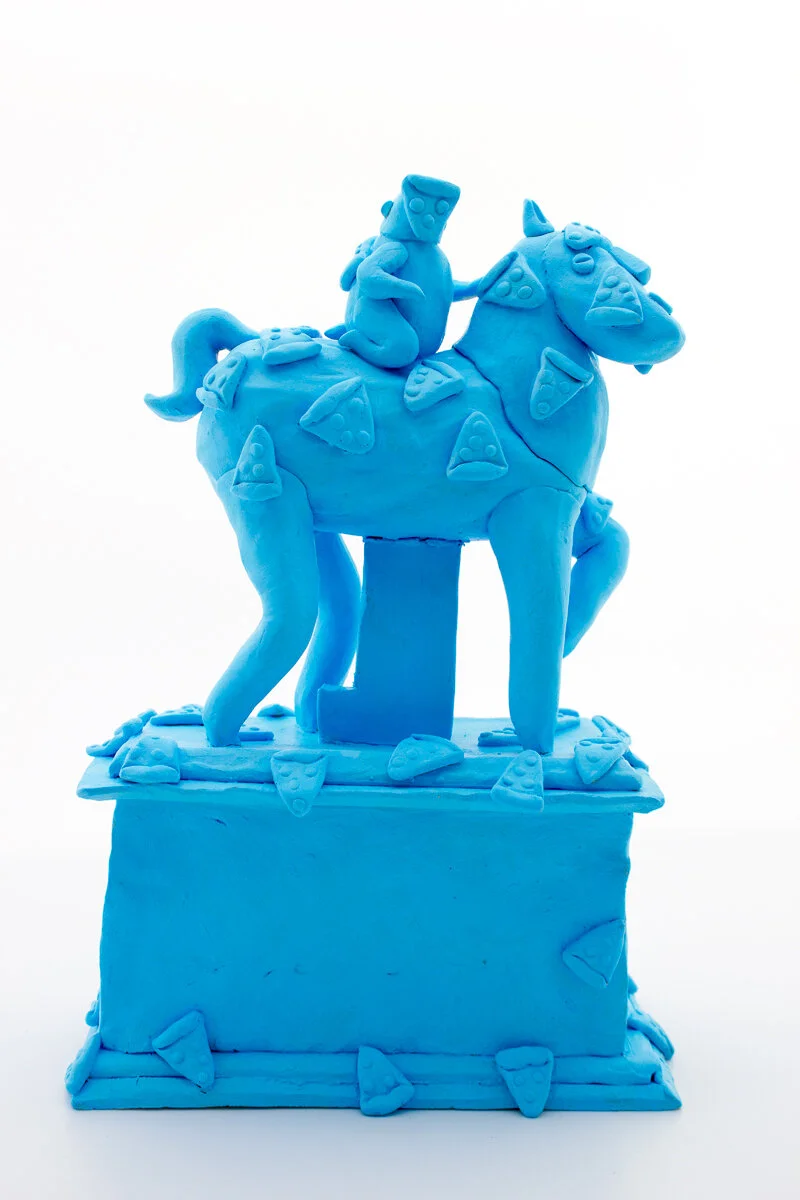 Blue Horsey, small ceramic sculpture with gouache paint, 23 x 15 x 7 cm. Available through L.A Pai Gallery